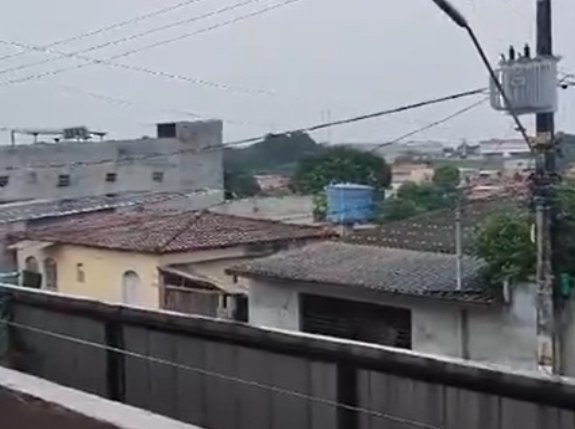 De cima de sua varanda, um morador registrou a ocorrência enquanto os vizinhos tentavam se proteger e se esconder.