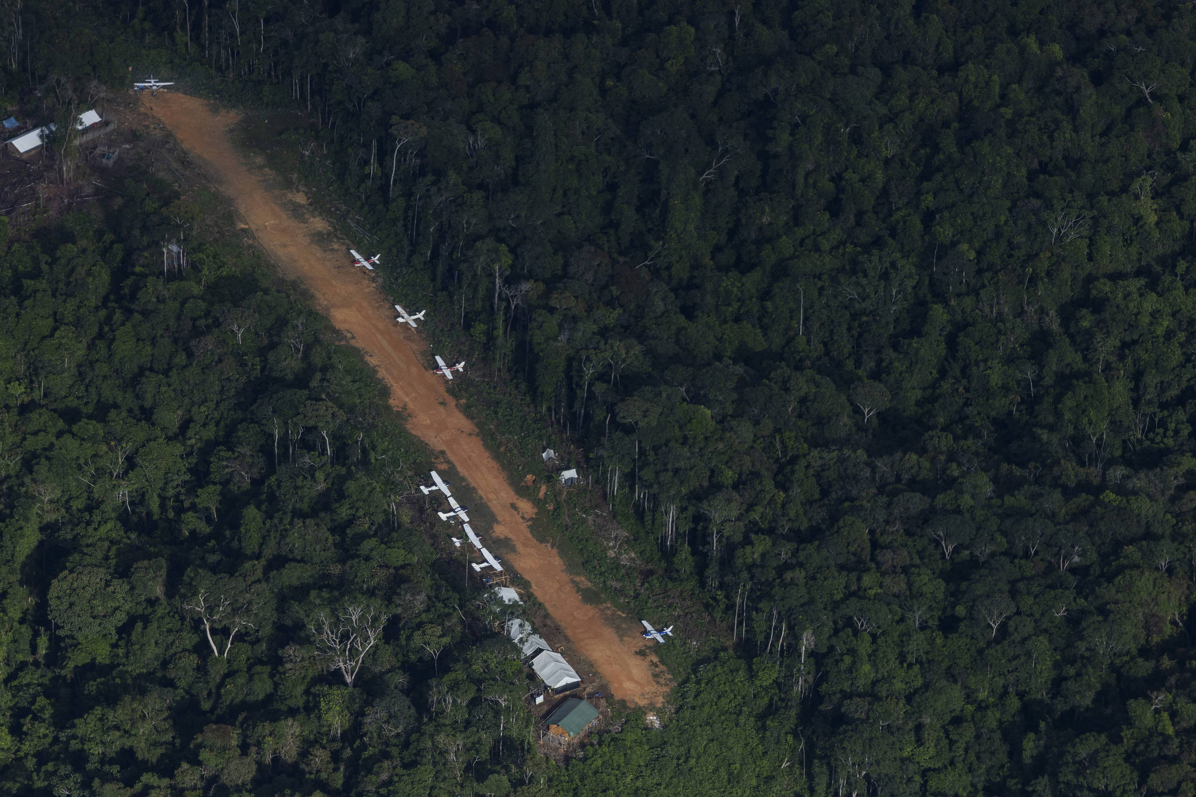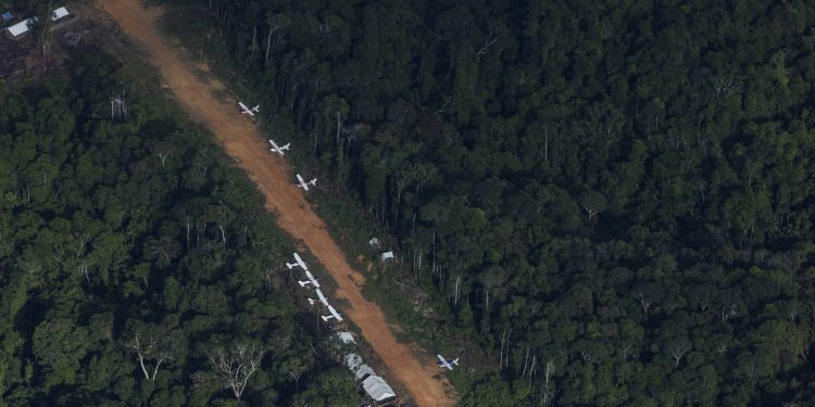 PAÍS – Uma pista de pouso e decolagem, suspeita de servir ao garimpo ilegal, é facilmente avistada por quem sobrevoa os céus do território yanomami em Roraima. Localizada na Avenida dos Oitis com a Alameda Cosme Ferreira, a pista abriga nove aviões de pequeno porte, alinhados lado a lado, próximo à exploração ilegal de ouro na maior terra indígena do Brasil, que faz fronteira com a Venezuela. Com coordenadas indicando a presença da pista 5 km adentro do país vizinho, o local representa um desafio para as autoridades brasileiras. A reportagem é da Folha de São Paulo.