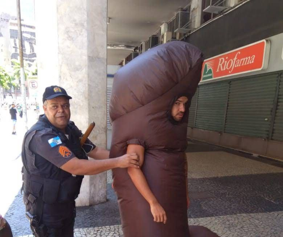 RIO JANEIRO (RJ) – Uma prisão um tanto quanto peculiar tomou conta das redes sociais nesta segunda-feira (20), de Carnaval e as imagens de um homem vestido de pênis gigante e sendo conduzido por um policial viralizou nas redes.