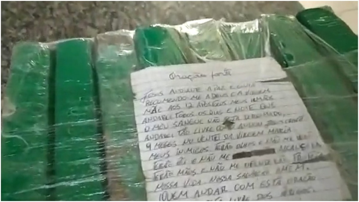 “Andarei livre como andou Jesus Cristo nove meses no ventre da Virgem Maria”, diz parte do texto da oração. Todo o material estava dentro de um ônibus que havia saído de São Paulo e rumava para o Ceará. A apreensão aconteceu na BR-381, na altura do município de Pouso Alegre.