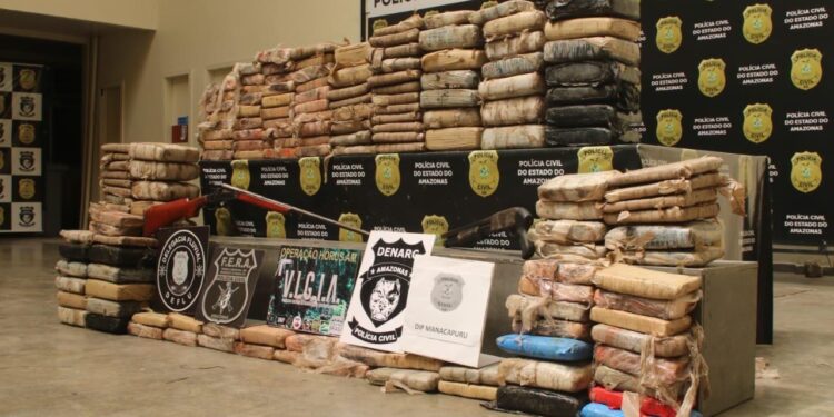 MANAUS-AM|A Polícia Civil do Amazonas, por meio das equipes do Departamento de Investigação sobre Narcóticos (Denarc), Grupo Força Especial de Resgate e Assalto (Fera), Delegacia Fluvial (Deflu) e Delegacia Interativa de Polícia (DIP) de Manacapuru, deflagrou na noite de sexta-feira (05/06), por volta das 21h, ação policial que resultou na apreensão de, aproximadamente, 250 quilos de maconha do tipo skunk, além de duas armas de fogo.