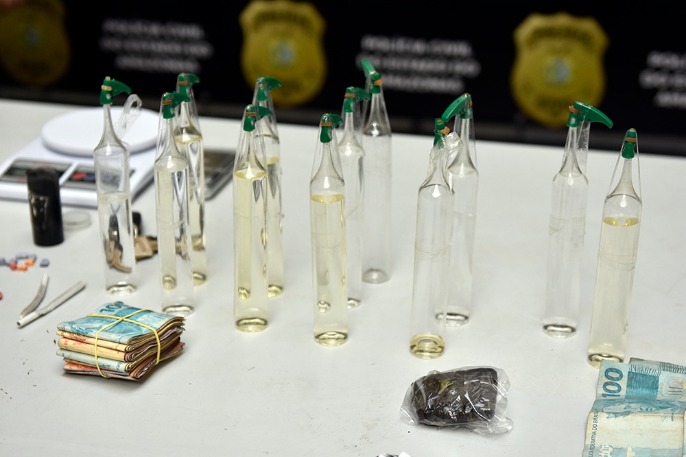 Durante a coletiva de imprensa, Martins destacou que, com os mandados em mãos, na tarde da quinta-feira (6/6), as equipes foram divididas. Na ocasião, cada equipe cumpriu um alvo e, nesses locais, foram encontrados, ao todo, 95 comprimidos de metanfetamina, 45 comprimidos de ecstasy, uma cartela de LSD, 12 frascos de lança-perfume, porções e tabletes de haxixe e porções pequenas de maconha.
