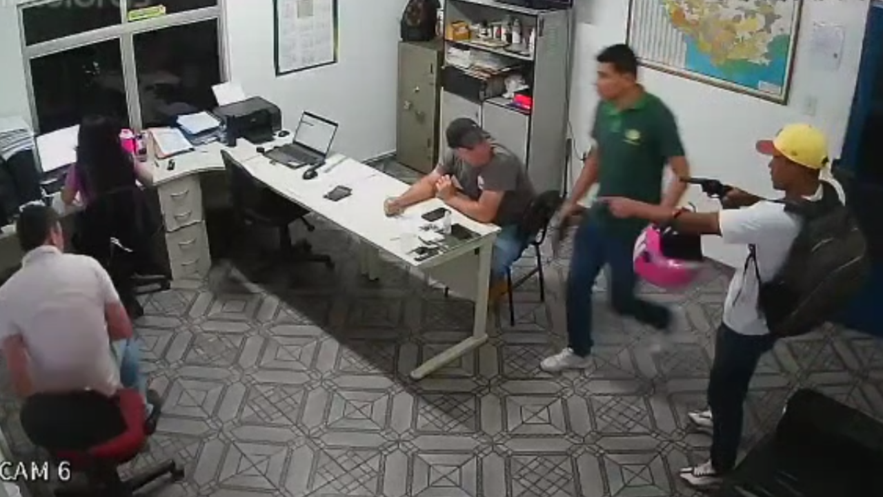 “Ambos portavam armas de fogo no momento da ação criminosa. Um deles estava trajando uma calça escura, camisa de manga curta branca e boné amarelo, com um capacete rosa pendurado no antebraço esquerdo, e outro estava vestindo calça jeans e camisa de manga curta verde”, falou o delegado.