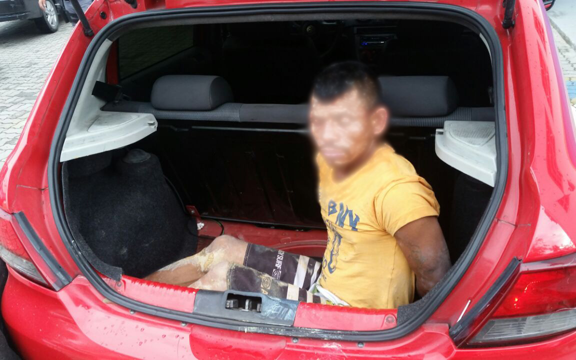 De acordo com as informações de policiais militares da 20ª Companhia Interativa Comunitária (Cicom), um veículo em atitude suspeita, não obedeceu o sinal de parada e empreendeu fuga em alta velocidade, ignorando a presença de pedestres na região. Após conseguirem interceptar o carro os policiais encontraram o homem imobilizado no porta-malas, com diversos hematomas pelo corpo.