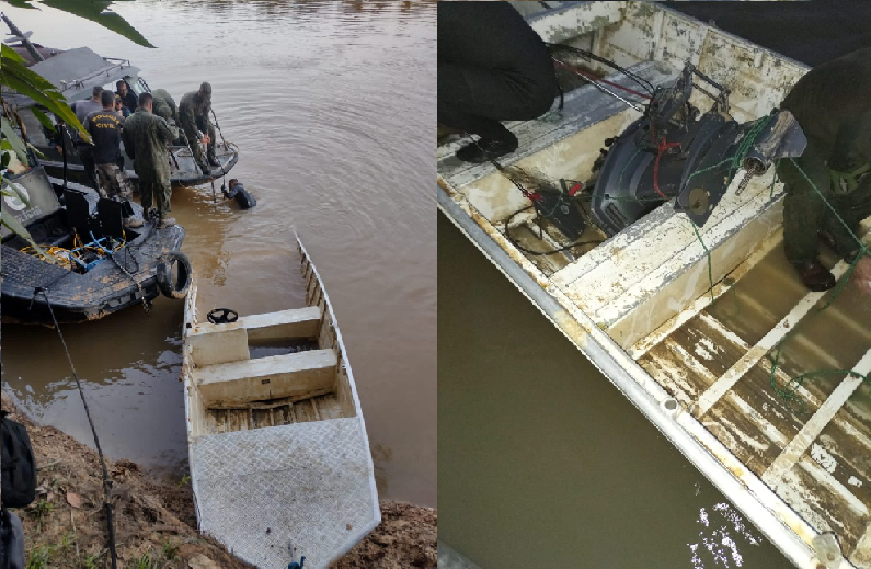 De acordo com o delegado Alex Perez, titular da 50ª Delegacia Interativa de Polícia (DIP) de Atalaia do Norte, foram quase cinco horas de operação. Além do casco da lancha, também foram encontrados um motor Yamaha 40 hp, quatro tambores de propriedade do Bruno, sendo três em terra firme e um submerso.