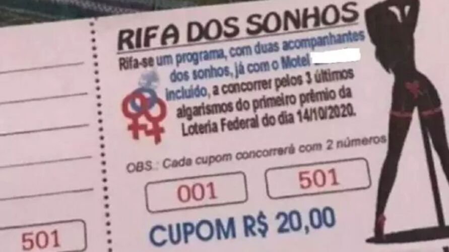 MINAS GERAIS | Uma rifa intitulada de “Rifa dos Sonhos” foi impedida de ser realizada no município de Janaúba, região norte de Minas Gerais, por oferecer como prêmio uma noite em um motel com duas garotas de programa.