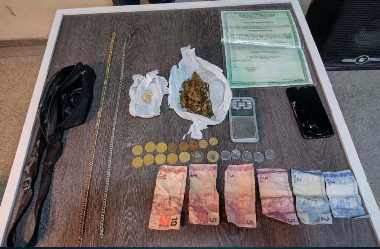 Durante a abordagem, foram apreendidas 264 porções de skunk e cocaína, uma balança de precisão e dinheiro. Os dois suspeitos receberam voz de prisão e foram conduzidos ao 6º DIP.