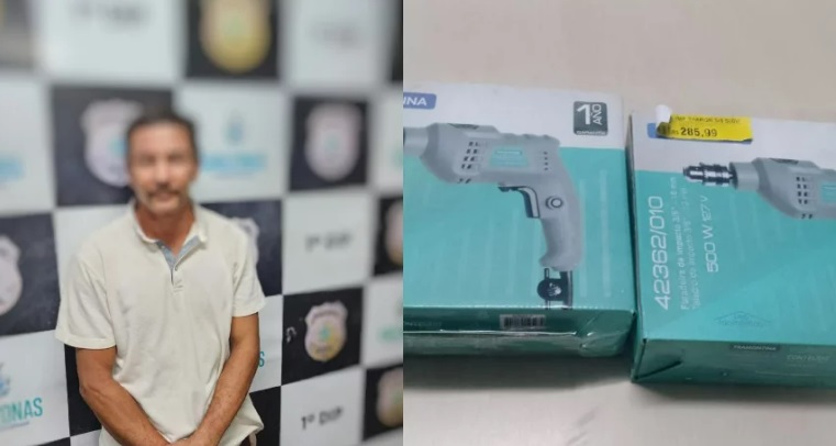 MANAUS – A polícia prendeu um homem que furtou uma caixa com parafusadeira no DB na terça-feira (1°). De acordo com policiais, ele ainda voltou ao supermercado para furtar mais objetos.