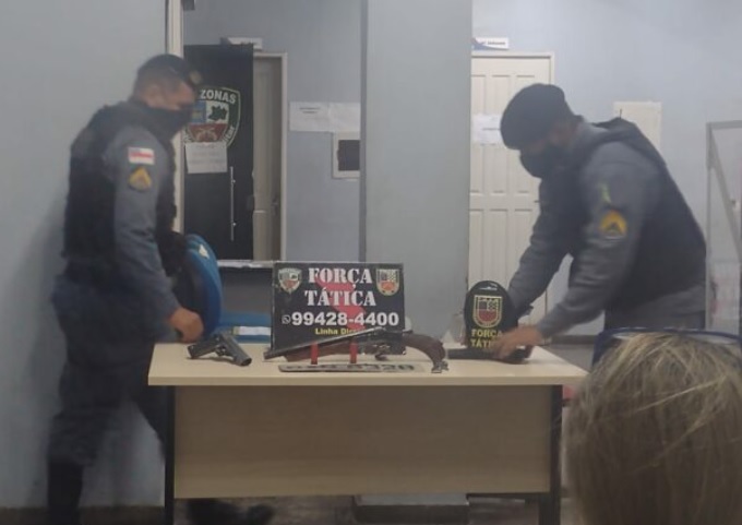 MANAUS, AM – A polícia retirou na noite desta segunda-feira (21) três bandidos perigosos, membros de facção assassina no bairro Mutirão. Dando rolezinho de moto, os marginais foram pegos dentro de um Celta, armados de escopetas calibre 12.