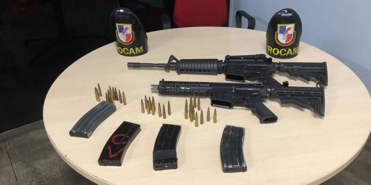 MANAUS – Um homem ainda não identificado foi preso na noite desta quinta-feira (1) por policiais das Rondas Ostensivas Cândido Mariano com dois fuzis 556 e 34 munições que, segundo os policiais militares, pertencem a facção criminosa Comando Vermelho (CV) foram encontradas em uma residência na Travessa Pires de Carvalho, comunidade Bairro da União União, no bairro Parque 10 de Novembro, zona Centro-Sul de Manaus.