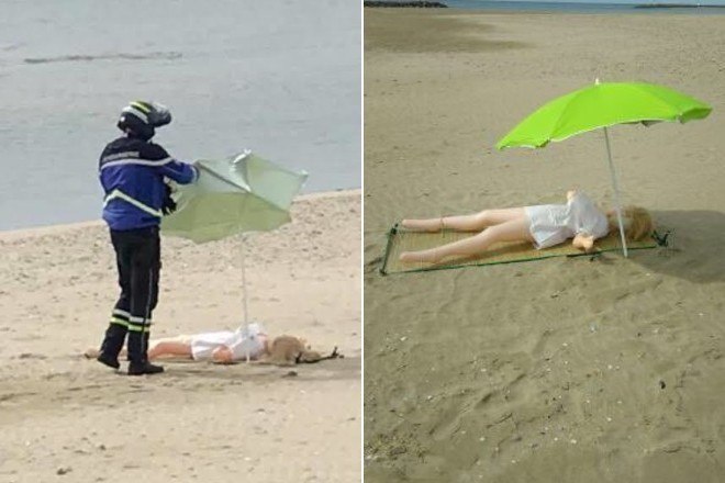Assim que notaram a “penetra” na praia, um dos policiais decidiu averiguar a situação. No entanto, a figura estendida sobre a areia era apenas uma boneca inflável. Apesar do mal entendido, as autoridades locais levaram a pegadinha numa boa e se divertiram com a situação.