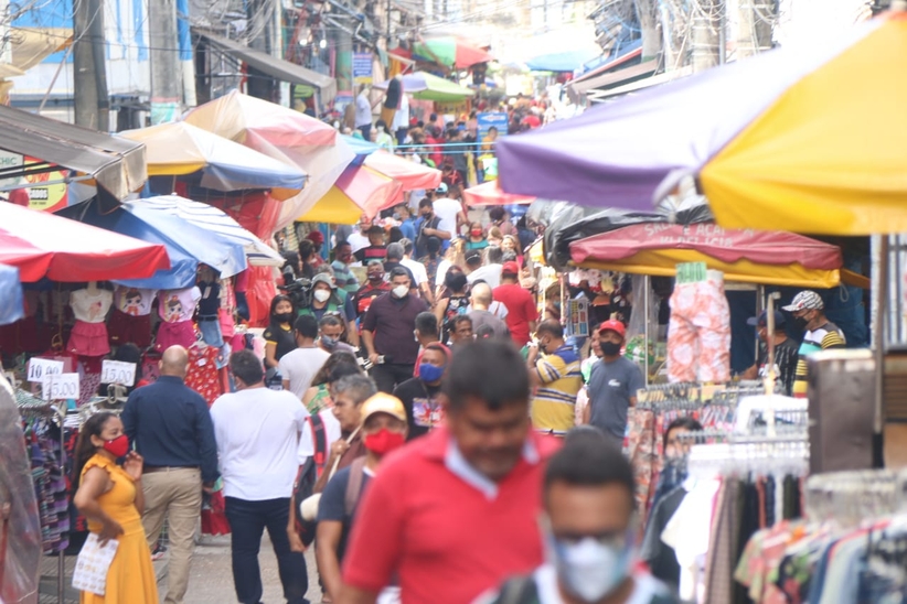 MANAUS – AM | Na manhã desta segunda-feira (22), populares lotaram o Centro da cidade, no primeiro dia de reabertura do comércio, autorizada pelo governo do Estado. Com avenidas lotadas é possível encontrar famílias inteiras, incluindo crianças e idosos.