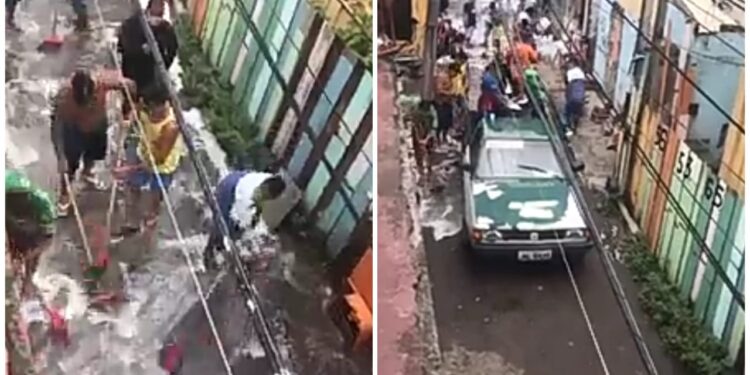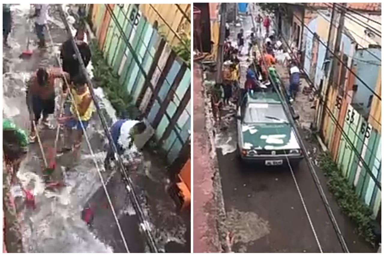 A ação foi transmitida ao vivo, pelo Facebook, na tarde deste domingo (03/05). Munidos de máscaras de proteção e materiais de limpeza, como baldes de água, vassoura e sabão, populares saíram lavando e esfregando as ruas do beco, como uma forma de espantar o vírus causador da Covid-19.