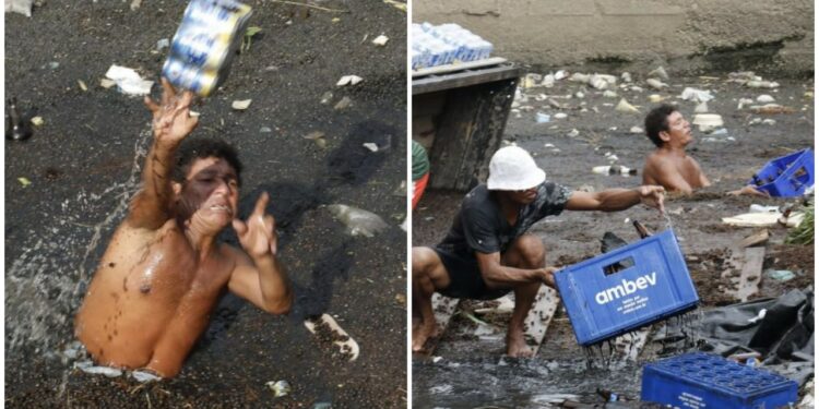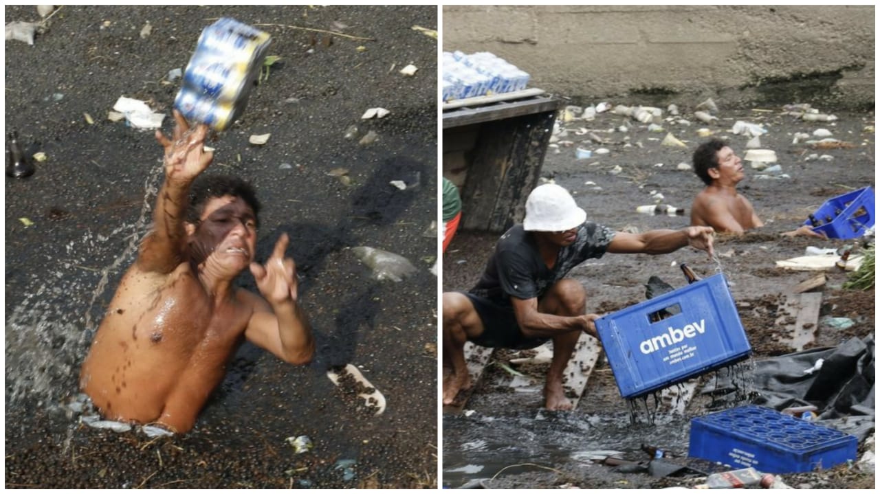 Ao perceberem que se tratava de um caminhão carregado de cerveja, muitas pessoas não fizeram cerimônia e mergulharam na água suja para subtrair a carga que ficou submersa.