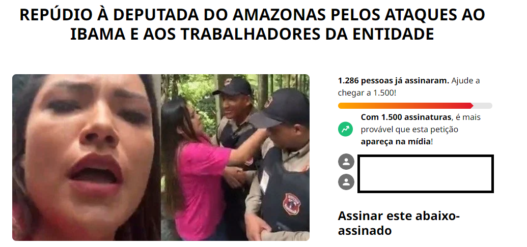 “Na ocasião, a parlamentar cometeu assédio e ameaça contra servidora pública federal, produziu vídeos em redes sociais difamando funcionária do Ibama, filmando e publicando na internet o próprio ato repugnante. Na ação, atirou-se sobre o carro da servidora em questão, que estava saindo do trabalho”, diz trecho do texto.
