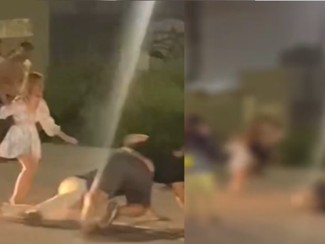 Nas imagens, os rapazes já estão do lado de fora onde trocam socos. Eles caem no chão e a “novinha” fica desesperada tentando impedir as agressões.