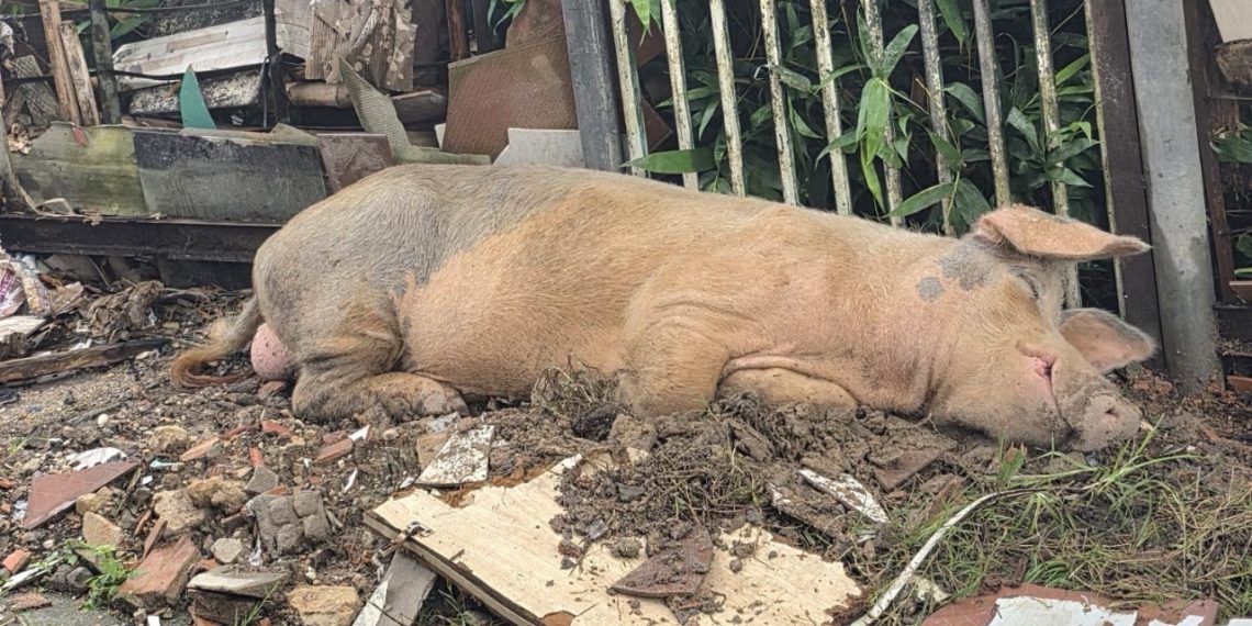 Moradores realizaram uma denúncia nesta segunda-feira (20) sobre um porco ferido que estaria há cerca de cinco dias abandonado após ser atropelado na rua Cotorno Norte, no bairro Armando Mendes, zona leste de Manaus. De acordo com relatos, o animal permanece caído próximo à calçada desde o acidente, apresentando sinais de dor e dificuldade para se mover.