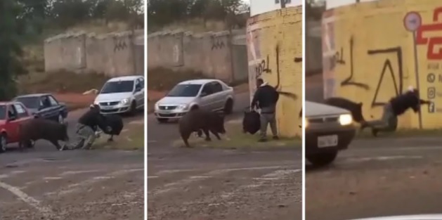 BRASIL – As imagens de um porco descontrolado atacando um entregador em Franca, São Paulo, viralizaram nesta segunda-feira (19). O trabalhador é atacado pelo animal enfurecido enquanto pessoas filmam a cena e parecem se divertir. Ele precisou de ajuda do Samu e foi atendido no hospital local.
