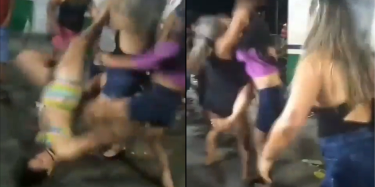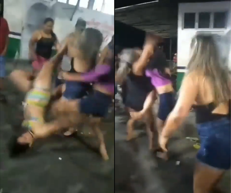 Um grupo de mulheres promoveu um verdadeiro ringue de UFC a céu aberto. As gatinhas se estranham entre si e partem para o ataque.