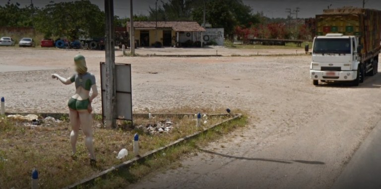 CEARÁ | Já há alguns anos uma rede de postos de combustíveis ao longo da rodovia CE-085 é motivo de brincadeiras por utilizar bonecas de fibra para chamar a atenção dos motoristas que passam pela rodovia.