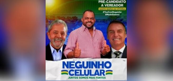 BAHIA| Nesta quarta-feira (26), o pré-candidato a vereador da Bahia, Marcos Henrique Barros Pereira, 37 anos, decidiu distribui santinhos virtuais com Luiz Inácio Lula da Silva (PT) e Jair Bolsonaro (sem partido) juntos para ganhar mais votos.