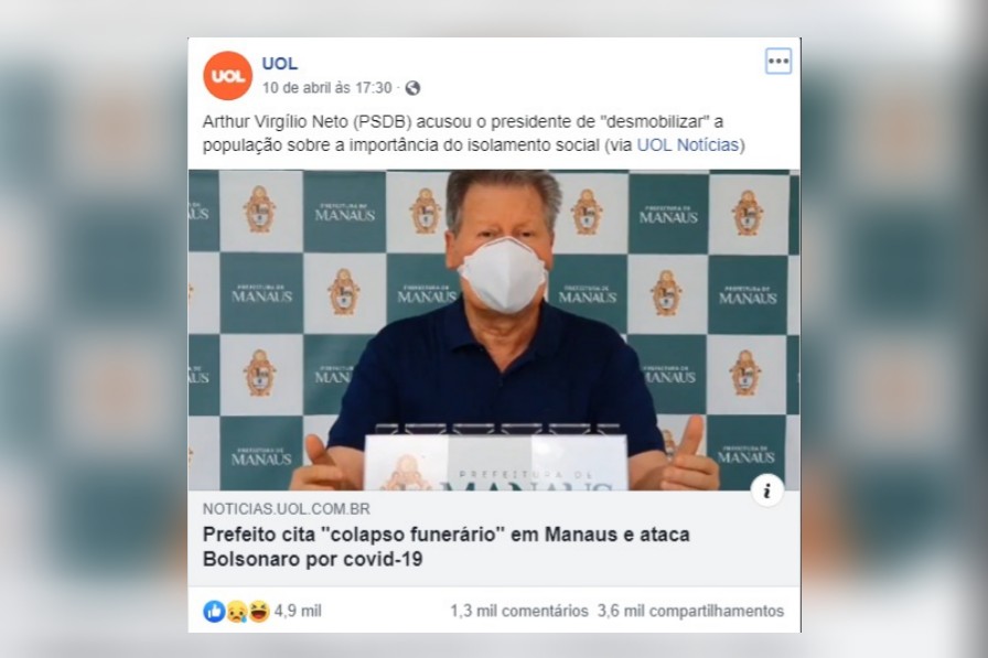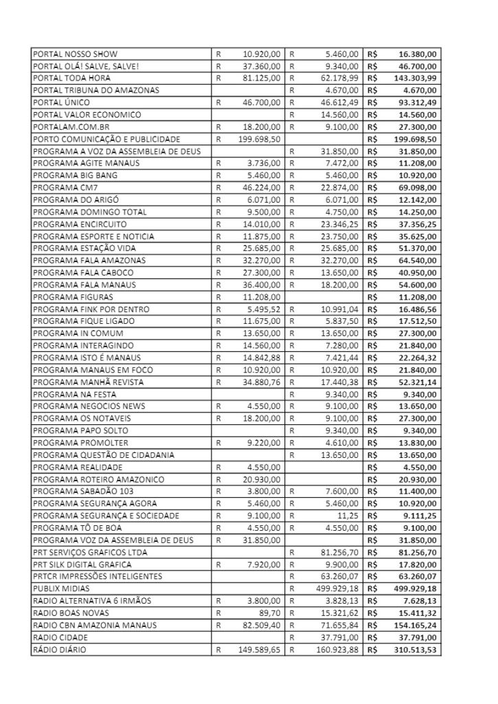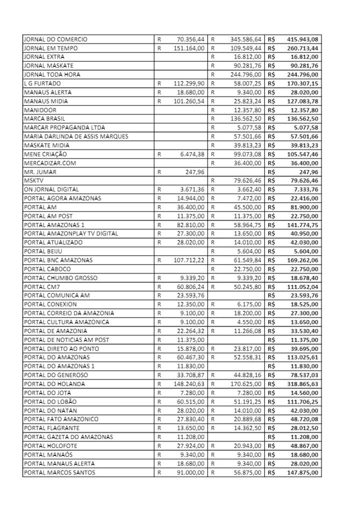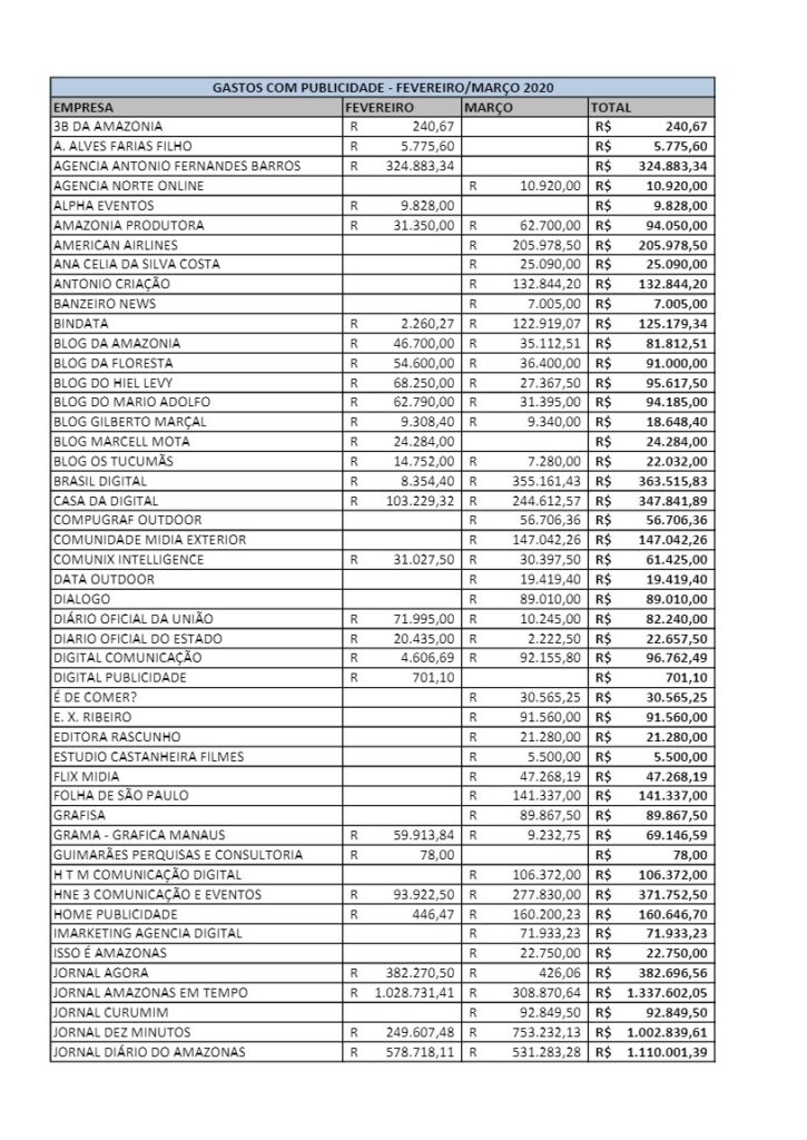 Em meio ao caos na saúde pública do município, com cerca de 135 mortes registradas até o momento, quase 23 milhões foram gastos com veículos de comunicação, como agências, portais de noticias e jornais, entre eles, a Folha de São Paulo, com um investimento de R$143 mil. Juntamente com seu provedor UOL, a Folha de SP têm dado grandes destaques às ações dos governadores, não só do Amazonas, como também de outros estados, destacando negativamente os feitos realizados durante o combate à pandemia.