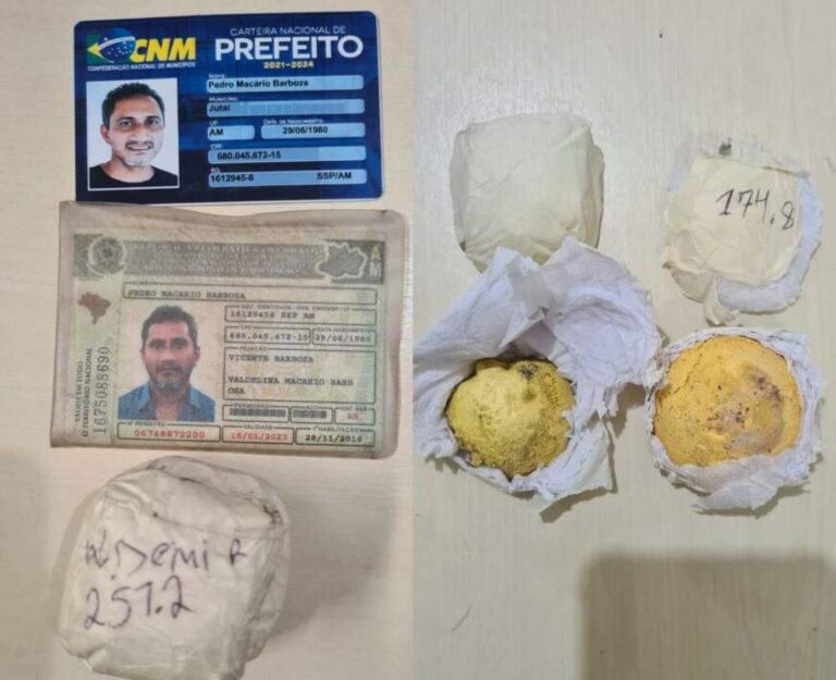 TEFÉ (AM) – | Policiais federais prenderam em flagrante, na manhã desta segunda-feira (22), o prefeito de Jutaí, Pedro Macario Barbosa (PDT), pelo crime de usurpação de bens da União. Ele foi pego com cerca de 257 gramas de ouro ilegal.