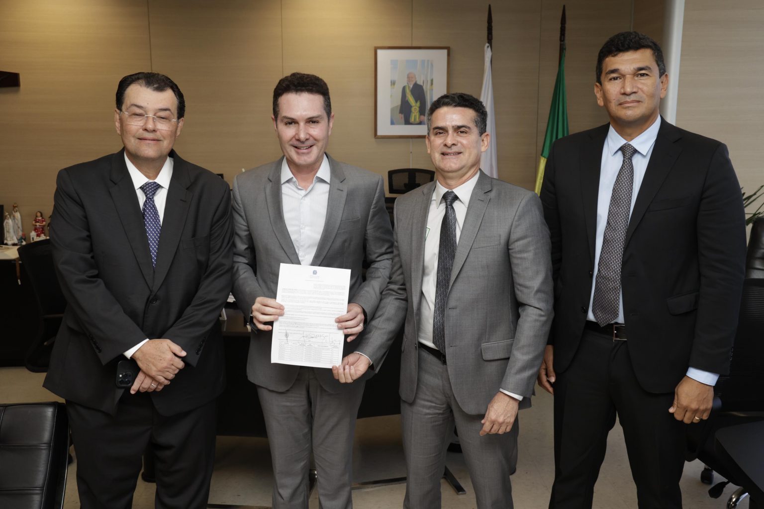 A reunião teve a participação do secretário municipal de Habitação e Assuntos Fundiários, Jesus Alves, e do senador Eduardo Braga.