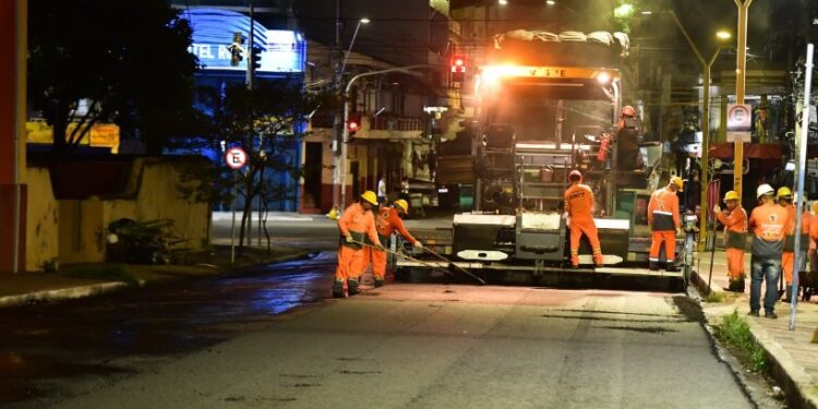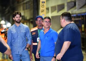 A Prefeitura de Manaus intensifica as ações do programa “Asfalta Manaus” em dez vias do Centro. Na noite desta segunda-feira, 7/11, o prefeito David Almeida, acompanhado do titular da Secretaria Municipal de Infraestrutura (Seminf), Renato Júnior, fiscalizou os serviços de recapeamento na rua José Paranaguá, esquina com a avenida 7 de Setembro.
