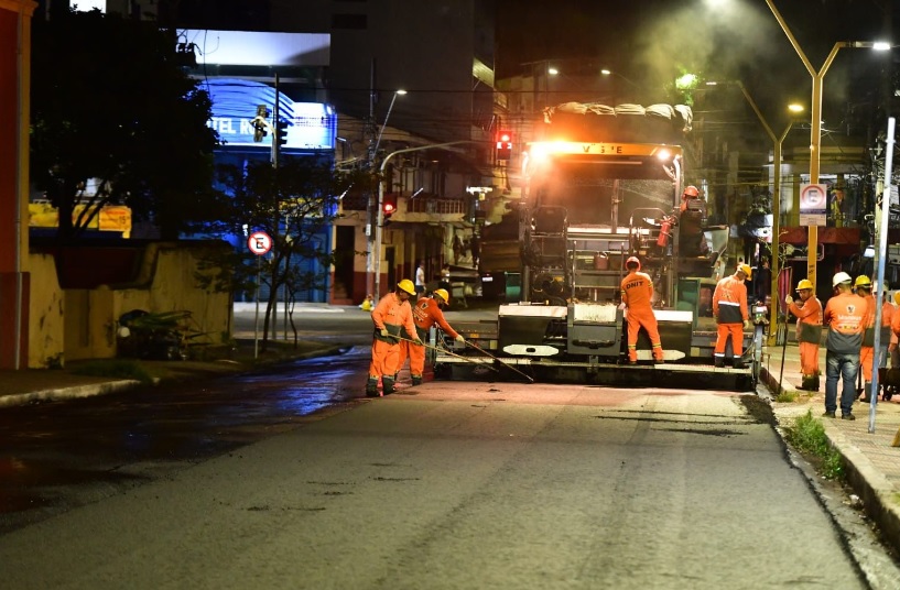 A Prefeitura de Manaus intensifica as ações do programa “Asfalta Manaus” em dez vias do Centro. Na noite desta segunda-feira, 7/11, o prefeito David Almeida, acompanhado do titular da Secretaria Municipal de Infraestrutura (Seminf), Renato Júnior, fiscalizou os serviços de recapeamento na rua José Paranaguá, esquina com a avenida 7 de Setembro.