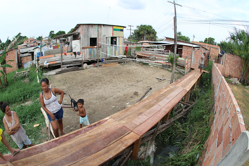 MANAUS (AM) – A Prefeitura de Manaus, por meio da Secretaria Municipal de Infraestrutura (Seminf), trabalha na construção de uma ponte em madeira, com aproximadamente 140 metros de extensão, na rua Santa Bárbara, na comunidade Parque São Pedro, localizada no bairro Tarumã, zona Oeste da capital. Um efetivo de 12 servidores está atuando no serviço, nesta terça-feira, 13/9, para proporcionar trafegabilidade em segurança aos moradores do local.
