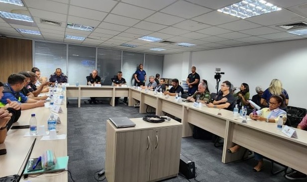 MANAUS – A Prefeitura de Manaus, por meio da Secretaria Municipal de Segurança Pública e Defesa Social (Semseg) e do Centro de Cooperação da Cidade (CCC), se reuniram na noite deste domingo, 8/1, com o Gabinete de Crise do Estado, para discutir as ações preventivas aos possíveis atos antidemocráticos. O encontro aconteceu no Centro Integrado de Comando e Controle (CICC), localizado na avenida André Araújo, bairro Aleixo, zona Centro-Sul.