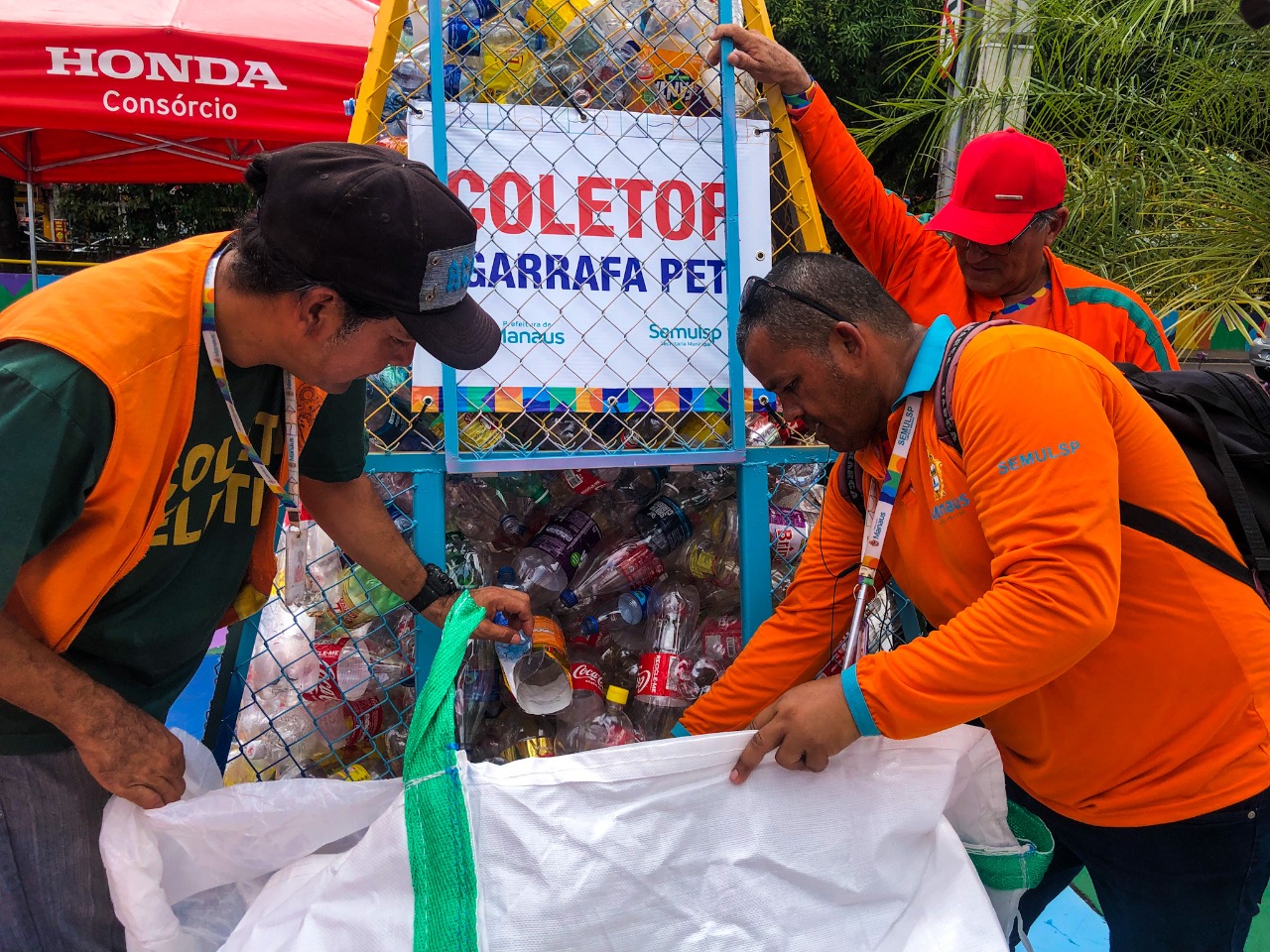 MANAUS – AM | A Prefeitura de Manaus, por meio da Secretaria Municipal de Limpeza Urbana (Semulsp), fez o recolhimento de garrafas de plástico, conhecidas como PET, nesta sexta-feira, 10/6, após uma semana da instalação do novo coletor, situado no trevo do bairro Compensa, zona Oeste, entre as avenidas Compensa e Brasil.
