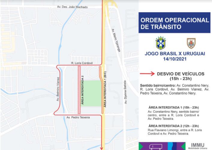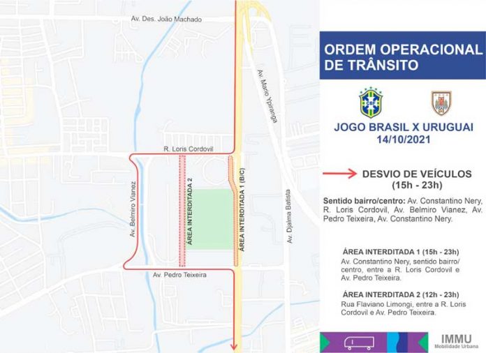 A medida foi necessária para garantir a fluidez das viaturas de segurança e das seleções brasileira e uruguaia, que disputam a 12ª rodada das Eliminatórias para a Copa do Mundo de 2022.