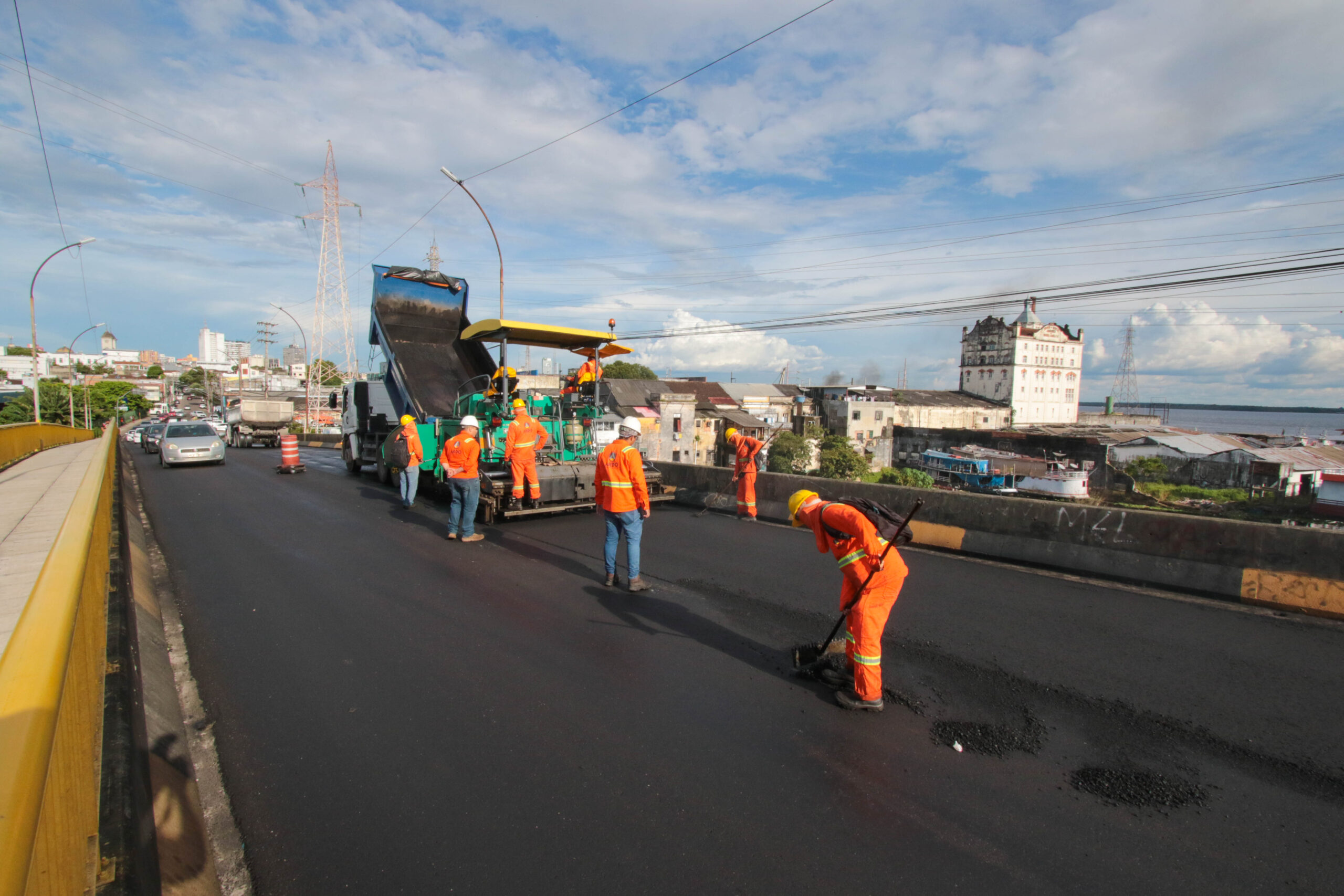 Outra frente de trabalho da Prefeitura de Manaus atua na ponte do bairro Aparecida, na zona central da cidade, que nesta segunda-feira recebe infraestrutura com aplicação de nova massa asfáltica, no total 500 toneladas, ao longo de 450 metros de extensão. Os trabalhos seguem intensificados em todas as zonas da cidade, aproveitando o clima favorável.