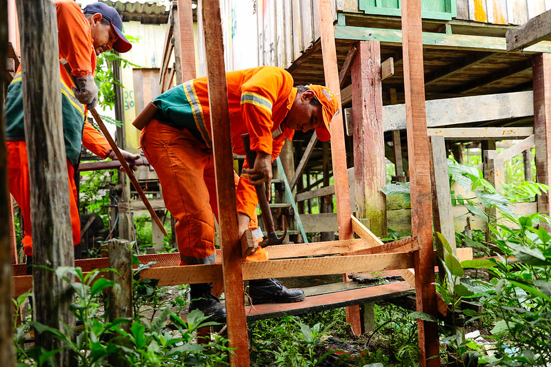 Para Emanuel Torres, morador do beco Bragança, o primeiro a receber a instalação das pontes provisórias, o serviço antecipado da Prefeitura de Manaus vai favorecer quem vive no entorno.