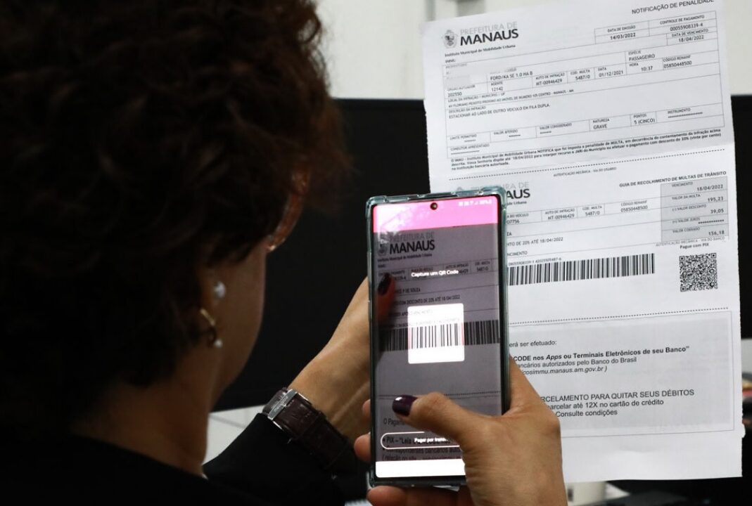 MANAUS (AM) – Motoristas autuados pela Prefeitura de Manaus, por meio do Instituto Municipal de Mobilidade Urbana (IMMU), podem realizar o pagamento da guia de recolhimento por meio de PIX disponibilizado no próprio documento de notificação de penalidade, que já vem com o guia de recolhimento com o QR-Code para o devido pagamento.