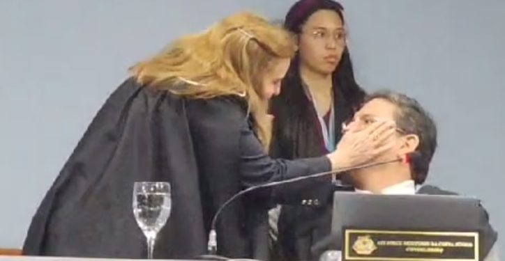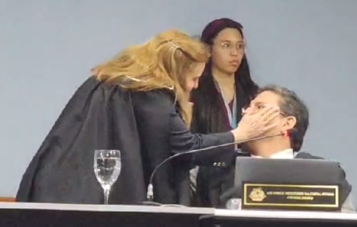 “Eu sou a única conselheira lá do tribunal e represento as servidoras da minha instituição. Eu relutei muito em vir aqui fazer essa denuncia mas eu não poderia me acovardar como muitas fazem, por ameaças, e eu não aceito ameaças. Eu quero que a justiça puna o agressor. Fui agredida dentro da minha função, no plenário do Tribunal de Contas. O vídeo mostra, depois que fui agredida fiquei paralisada, passei a mão no rosto dele e disse: ‘você é um infeliz, por isso que sofre tanto’. Ele sarcasticamente tentou pegar no meu rosto e jogou beijo para mim”, completou.