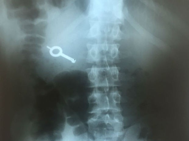 Um deles foi o que engoliu a chave. Ela foi identificada no detector de metais do Hildebrando de Souza. O detento, então, foi encaminhado ao Hospital Municipal, onde fez um raio-X que confirmou a ingestão da chave.