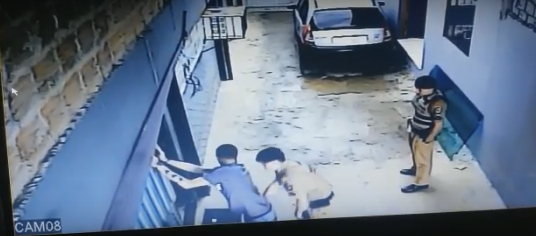 O investigador da policia reagiu e atirou contra a perna do preso. Uma das câmeras de segurança do local flagrou o momento. Veja: