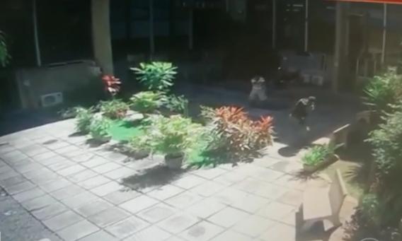 No tiroteio, ele atingiu a recepção da central de plantões, além de uma viatura que estava estacionada e, foi baleado na perna por um policial. A ação criminosa foi registrada por câmeras de segurança.
