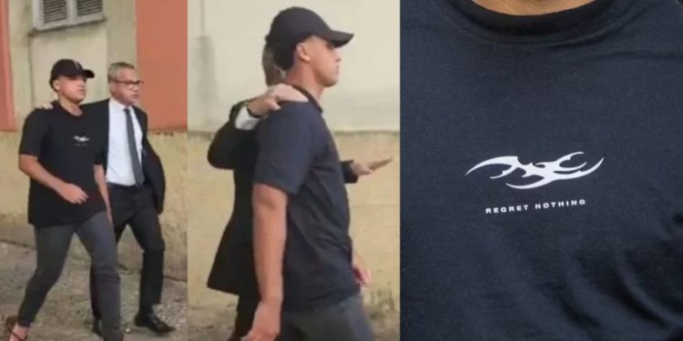 BRASIL – Um jovem identificado como Vitor Hugo de Oliveira Simonin, de 18 anos, prestou depoimento na 12ª Delegacia de Polícia (Copacabana), no Rio de Janeiro, no âmbito da investigação sobre o estupro coletivo de uma adolescente de 17 anos ocorrido na Zona Sul da capital. O suspeito chamou atenção ao comparecer à delegacia vestindo uma camiseta com a frase em inglês “Regret Nothing”, que significa “Não se arrependa de nada”.