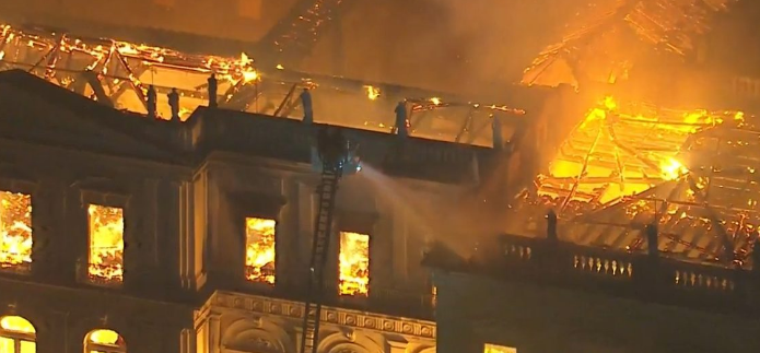 Rio – Um incêndio atinge o Museu Nacional da Quinta da Boa Vista, em São Cristóvão, neste domingo. Segundo os primeiros relatos, o incêndio começou às 19h30. Equipes de quatro quartéis do Corpo de Bombeiros foram acionadas e atuam no combate às chamas. Nas redes sociais, muitas pessoas postam fotos e vídeos do incêndio, que pode ser visto de várias partes da cidade. Não há registros de feridos.