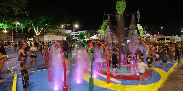MANAUS (AM) – O prefeito de Manaus, David Almeida, entregou, nesta quinta-feira, 9/11, a primeira das 15 praças molhadas projetadas para a capital amazonense, localizada na alameda São Benedito, no bairro Morro da Liberdade, zona Sul. O espaço de 1,7 mil metros quadrados, construído pela Secretaria Municipal de Infraestrutura (Seminf), foi projetado e adaptado para os públicos infantil e adulto, com programações de zumba e outras atividades físicas.