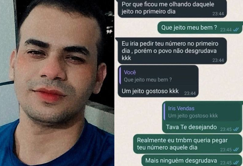 “Fiquei tremendo quando dei meu número pra você. Pensei que estaria com a sua mulher”, diz ela, identificada como “Iris Vendas”. O homem relata ainda que já não está bem com a esposa e que só continua com ela por causa do filho, que ainda é pequeno.