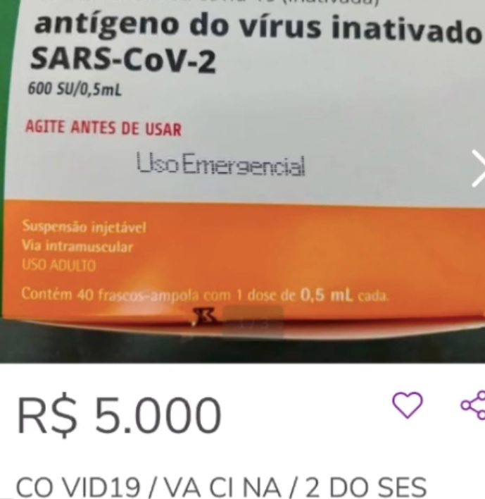 SANTA CATARINA | O Procon SC notificou a OLX por um inacreditável e falsário anúncio falso que oferecia a vacina CoronaVac pelo preço unitário de R$ 5 mil e R$ 9 mil por duas doses. No documento, o órgão determina pena de multa diária de R$ 100 mil e sanções administrativas.