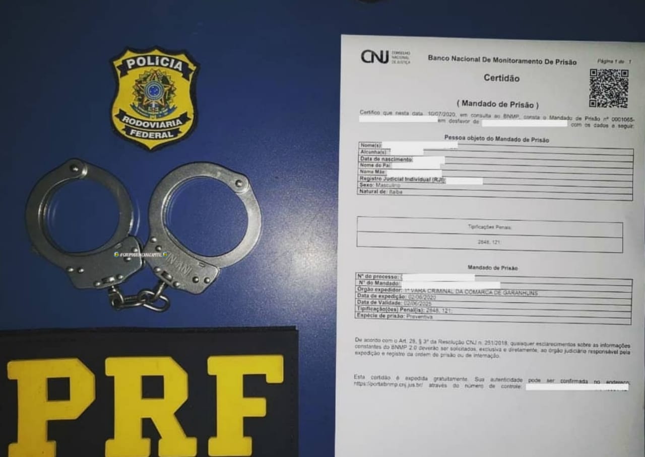 Ele informou aos policiais que estaria indo até a cidade para morar com seu irmão e quando os policiais realizavam os procedimentos de fiscalização constataram o mandado de prisão em aberto pelo crime de Homicídio expedido pela 1ª Vara Criminal da Comarca de Garanhuns/PE.