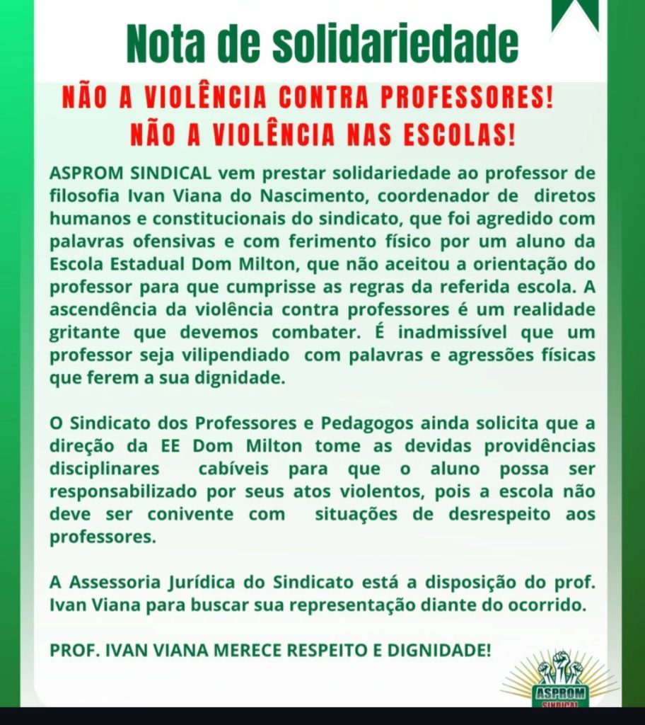 O Sindicato de Professores e Pedagogos de Manaus emitiu uma nota e repudiou o ocorrido.