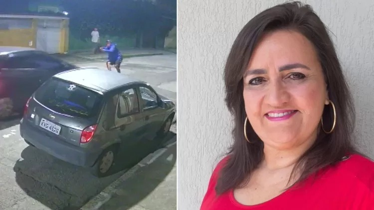 Nas imagens, é possível ver a dupla caminhando pela calçada. Em seguida, o veículo em que Eliane estava aparece e um dos assaltantes, com a arma em punho, fica na frente do carro.