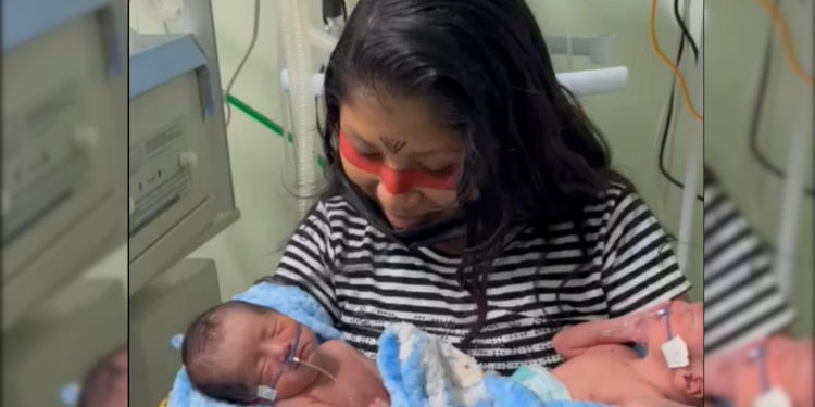 PARINTINS (AM) – A professora indígena Jolene Miquiles da Paz, 28, teve uma grande surpresa na hora do parto: a gestante descobriu no momento de dar à luz ao filho Levi, que estava esperando mais um bebê. O caso aconteceu no Hospital Padre Colombo, em Parintins, interior do Amazonas, no dia 5 de abril.